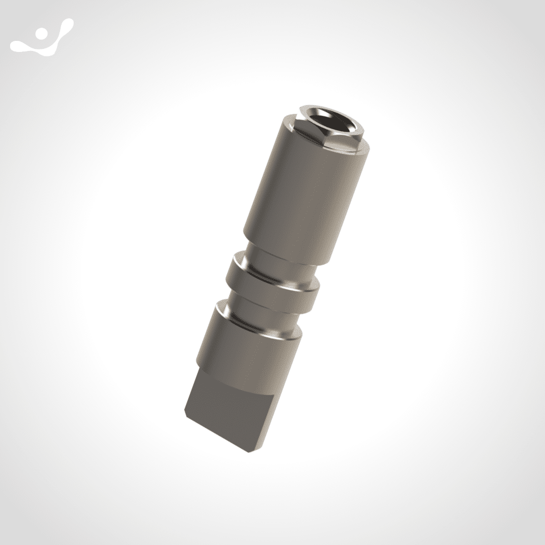 Indicado como réplica, simulando a posição de instalação do implante ou componente em um modelo.